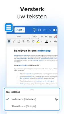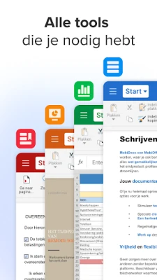 Speciaal ontworpen voor de moderne professional, maakt MobiOffice werken onderweg eenvoudiger dan ooit. Krijg direct toegang tot al uw bestanden dankzij de geïntegreerde cloudopslag, inclusief 5 GB gratis opslag op onze eigen MobiDrive, of koppel uw bestaande accounts zoals Google Drive, OneDrive, Box en Dropbox. De app garandeert cross-platform synchronisatie, waardoor uw Windows-pc naadloos samenwerkt met al uw Android- en iOS-apparaten. Met brede compatibiliteit voor bestandsindelingen van Microsoft, OpenOffice en Apple's iWork, en beschikbaar in meer dan 65 talen, bent u overal en altijd productief met een praktische en geoptimaliseerde gebruikersinterface. Begin vandaag nog met MobiOffice om documenten te lezen en te bekijken, en ontdek het volledige potentieel tijdens een gratis proefperiode van zeven dagen. Ervaar documentbewerking en alle geavanceerde tools zonder beperkingen. Upgrade naar een Premium abonnement via flexibele maandelijkse of jaarlijkse plannen voor exclusieve voordelen zoals 50 GB MobiDrive-opslag, onbeperkte PDF-conversies, toegang tot meer dan 20 extra functies, gebruik op meerdere apparaten (2 mobiel, 1 Windows-pc), een advertentievrije ervaring en prioritaire ondersteuning.