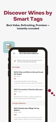 Wino: Identify & Explore Wines helpt je direct wijn te herkennen. Scan labels en menu's voor proefnotities, beoordelingen, spijscombinaties en slimme tags. Bouw je persoonlijke collectie op. Perfect voor elke wijnliefhebber die meer wil genieten.